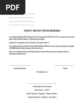 Surat pengesahan tidak bekerja ibu bapa. See more of Pesuruhjaya Sumpah. 19 contoh surat akuan sumpah pasangan tidak bekerja.